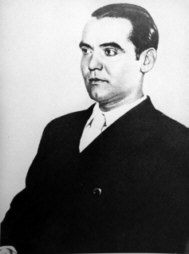 latentes en su obra, cuando Estudios en la Universidad, sin ningún entusiasmo. Lecciones de guitarra y piano. La música, que le fascina, parece por un momento ser la vocación elegida. No fue así, La definición literaria salta entonces para modelar al poeta y escritor que conocemos. Estamos en 1918 y su primera obra Impresiones y Paisajes marca el giro en su rumbo. Parece como si una enorme prisa le moviera. Ese afán de "hacer cosas" le lleva, desde la Granada del "Rinconcillo", al Madrid de la Residencia de estudiantes, a Cataluña o a Sevilla. Nuevos libros, estrenos de teatro. La revista Gallo, que agita el provinciano ambiente granadino por un momento. Es el año de Romancero gitano, que consigue un éxito difícilmente predecible. La siguiente etapa de su vida hay que situarla en América. Etapa corta, pero enormemente intensa y que marca una inflexión importante en su obra. Quizá también en su vida. Primero en Estados Unidos, poco después en Cuba. A través de lo que dejó escrito, podemos comprender qué hondamente afectó a Federico este viaje, que traza una tenue divisoria. Vienen luego los años de la República y del Teatro Español Universitario, "La Barraca". Nuevos estrenos y un viaje triunfal por diversos países hispanoamericanos. Trabaja en La Casa de Bernarda Alba. Es la Andalucía trágica la que asoma a sus páginas. Federico no podrá asistir a su estreno. El 20 de agosto de 1936, todo queda para él sumido en el silencio. Un silencio sólo roto por su voz, que ha llegado a nosotros. |