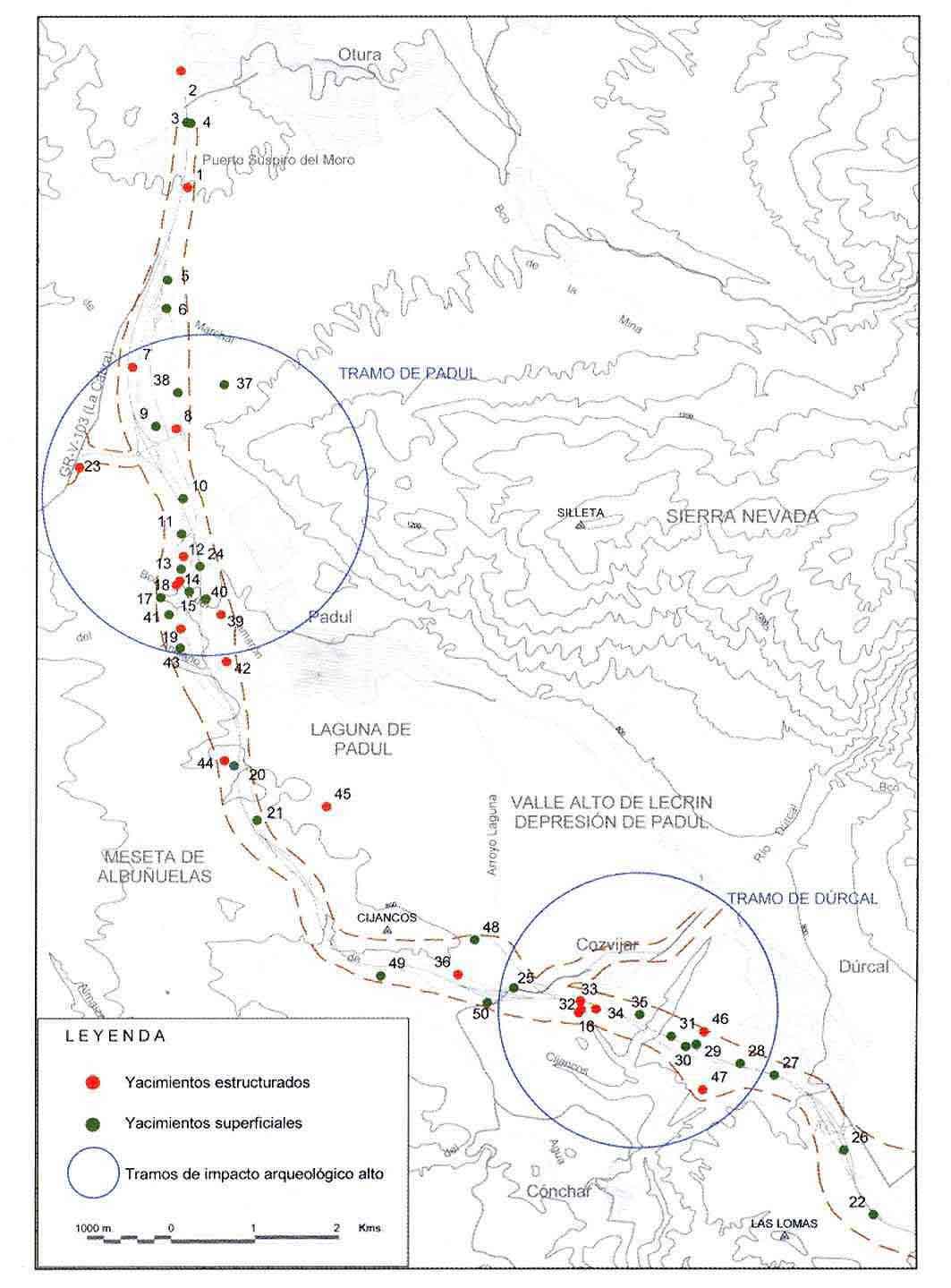 Sacado de "La gestión del Impacto arqueológico en carreteras. Un ejemplo andaluz en la autovía Alhendín-Dúrcal (Granada)" de Antonio Ramos Millán y María del Mar Osuna Vargas