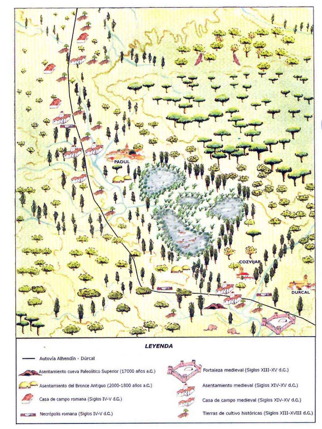 El Bronce Antiguo (2000-2700 a. C.) es el primer momento (pre) histórico de colonización agraria de estas tierras, representando el más antiguo poblamiento permanente generalizado en los altiplanos, en medios distanciados de las vías fluviales principales. Esta es la época de los primeras jefaturas territoriales, cuando los excedentes cerealísticos cobran por primera vez una relevancia destacada en la economía política de estas sociedades tribales complejas. La colonización y puesta en producción de estas tierras marginales, será desde ahora una determinación de la economía política instituida. Se trata en estos momentos prehistóricos, de pequeñas aldeas satélites de otras mayores y centrales, que herederas estas últimas de épocas anteriores, están ubicadas en los contextos geográficos de mayor riqueza ecológica, como serían en nuestro caso tanto el borde de la Laguna del Padul, como la cabecera del río Dúrcal.