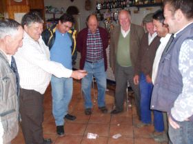 Los vecinos se reúnen a jugar a las charpas en el bar Sifón de la localidad. |