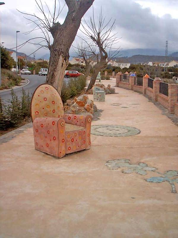 | Diferentes esculturas que invitan a sentarse y contemplar el paisaje | ||
