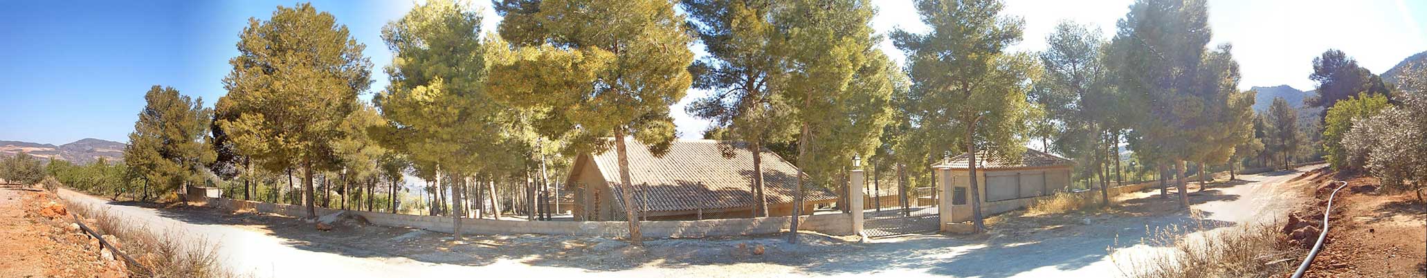 Circular en 360º desde el interior del camping, donde se pueden apreciar sus construcciones y el bosque de pinos donde se encuentra