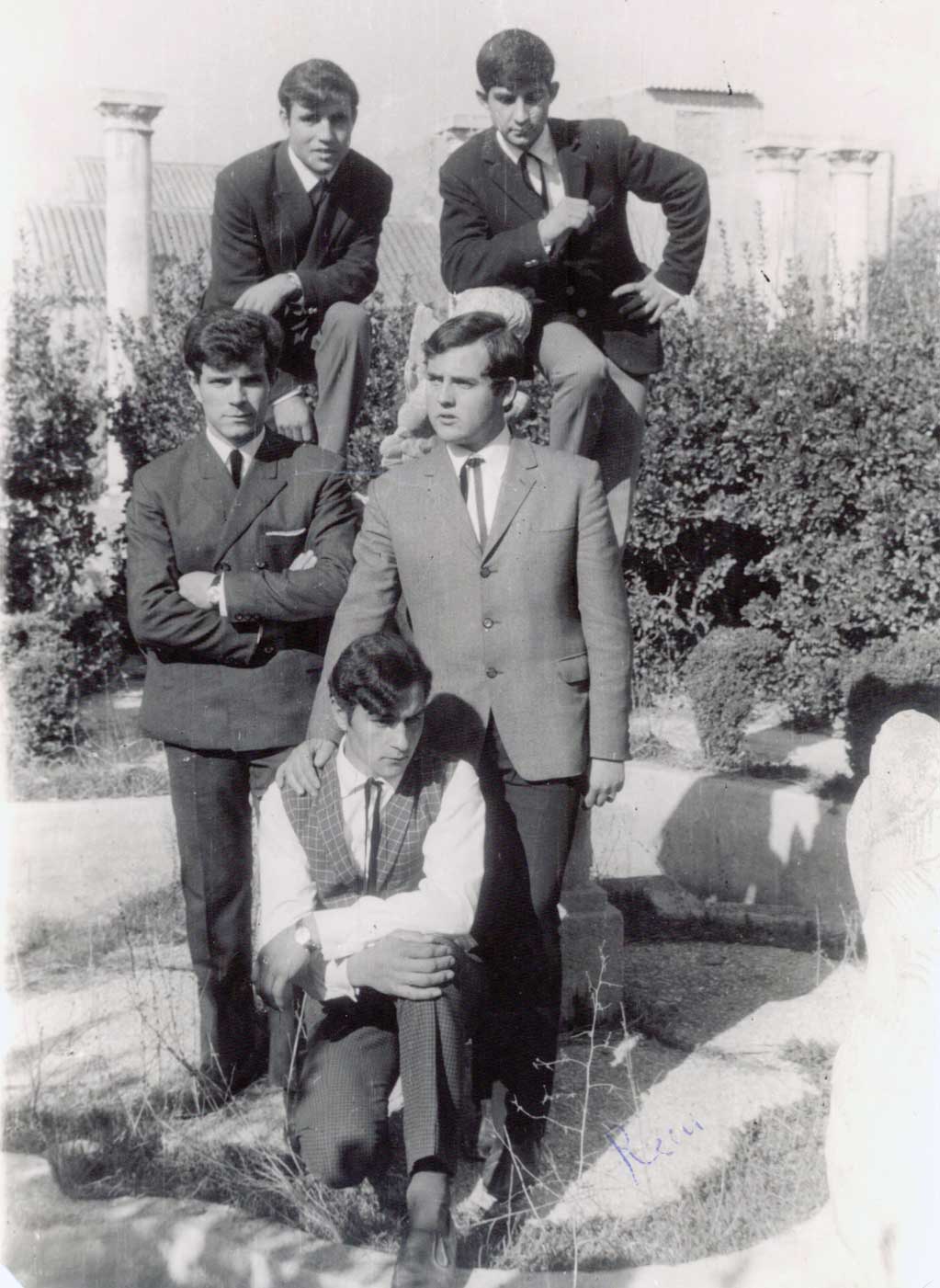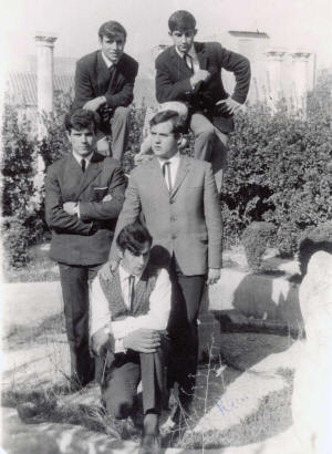 Grupo musical de aquel entonces y un señor, ambos se fotografían