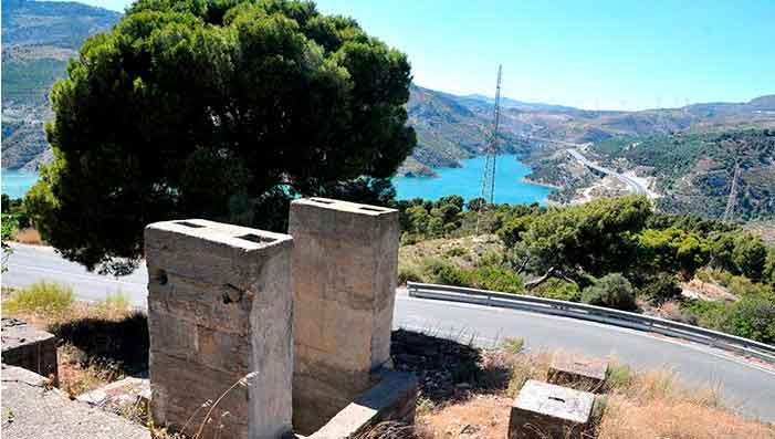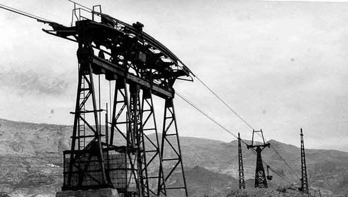Entre la vegetación de pinar y monte bajo de la sierra de Lújar, sobre la presa de Rules, dos grandes tocones de hierro, viejos railes ya oxidados, sobresalen sobre una plataforma de piedra y cemento. Marcan la dirección por la que se desplazaba un larguísimo cable de acero de casi 40 kilómetros de largo y que comenzaba en Dúrcal para llegar al puerto de Motril y volver de nuevo a su punto de partida. Desde esos dos viejos testigos del único teleférico granadino, se divisa la línea serpenteante de la autovía de la Costa. Dos sistemas de comunicación separados por menos de medio centenar de años.