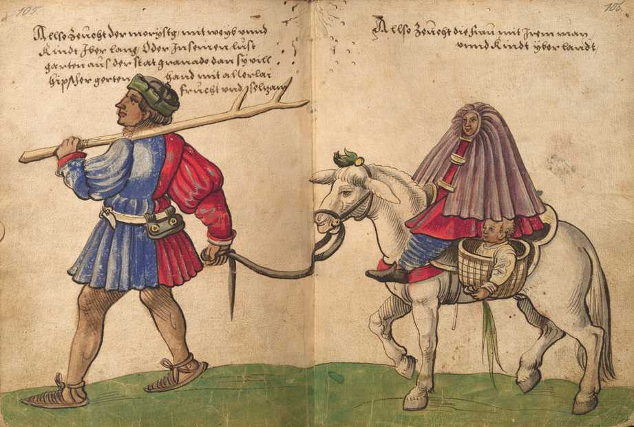 "Moriscos del reino de Granada, dando un paseo por el campo con mujeres y