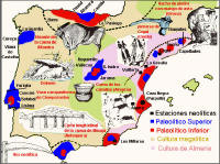El final de la última glaciación, hacia el año 10.000 a.C. permitió la evolución hacia otro estilo de vida más sedentario. Se inició entonces el periodo Neolítico, durante el cual proliferaron –especialmente en el Sur y Levante– poblados de agricultores y pastores, con abundantes muestras de una tecnología superior (instrumentos de piedra pulimentada, cerámica, molinos de mano) y de una organización social compleja (enterramientos colectivos, adornos que simbolizaban el rango y monumentos megalíticos demostrativos de una cierta capacidad de cooperación).