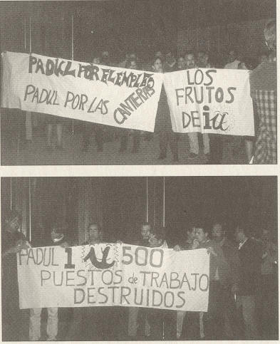 Los paduleños se manifestaron en Granada en protesta por el cierre de la cantera "Millón 48". En la foto, dos momentos de la concentración que llevaron a cabo ante el mitin del líder de Izquierda Unida, Francisco Frutos, en el Palacio de Congresos, durante la pasada campaña electoral. |