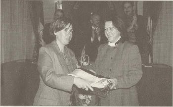 La presidenta de Vale, Josefa Villaverde, recibe la bandera de manos de la delegada de Asuntos Sociales, María José Sánchez. |