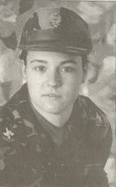 Jeanette, con su flamante uniforme de soldado profesional.