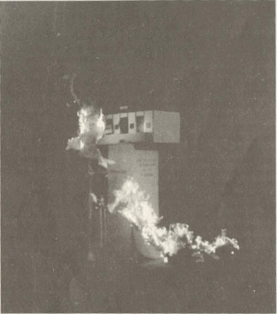 Como el día de la Lumbre coincidía este año el veintidós de mayo, Día Internacional de la Tierra, a los melegileños se les ocurrió criticar el estado de salud del planeta, metiéndolo en una escupidera y colocándole tres torres industriales contaminando el aire con humo, en el cual podía leerse las iniciales S.O.S. y varios carteles alusivos al tema.