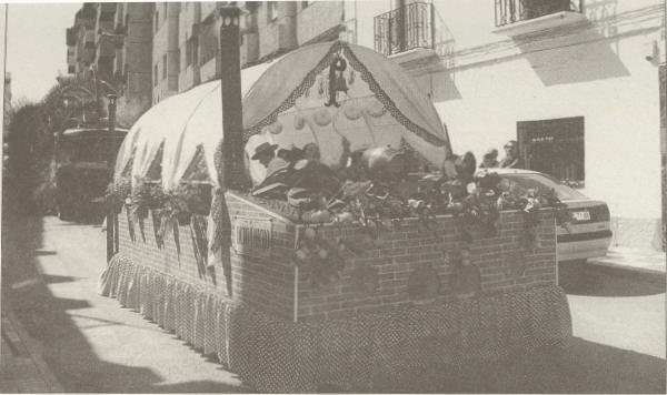 | VIVA SAN ISIDRO. Como en los mejores años de la fiesta de los Hornazos, las calles de Dúrcal quedaron casi desiertas el día de San Isidro. Y es que fueron muchas los durqueños que se fueron de romería hasta Marchena. Y fueron también, un año más numerosas las carrozas que participaron en la procesión de San Isidro, como ésta tan original y cuidada, "Dicho y Hecho", en la que ni por un sólo momento faltó la alegría y el buen humor, como manda San Isidro Labrador. |