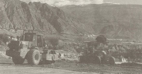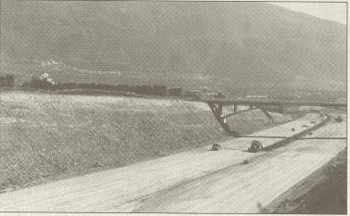 Una profunda trinchera hace ahora que la calzada, a continuación, en dirección a Dúrcal, se rebaje, y con ello la altura del puente, sobre el río, cuyo barranco se divisa a lo lejos.