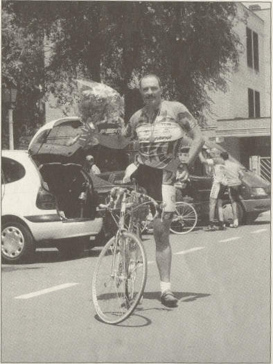 "Aunque he estado tres años sin competir, hacía unos veinte mil kilómetros al año. Entreno todos los días; me levanto a las siete y media de la mañana para coger la bici, vuelvo a las nueve, me ducho, desayuno y me voy al trabajo. Después de estar mis ocho horas trabajando, por la noche también entreno unas cuantas horas en casa", afirma este auténtico amante de la bicicleta que volverá a competir gracias a la ayuda de Restaurante Casa Fidel, Tuyser Construcciones, Quesbur, La General, Estación de Servicio San Blas y la colaboración técnica de Bici Aventura, a los que agradece tanto su ayuda económica como moral.