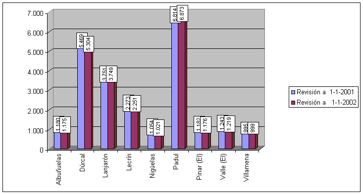 | Revisión del Padrón Municipal de Habitantes a 1 de enero de 2002 | |||||