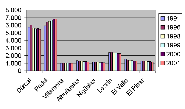 | Dúrcal | Padul | Villamena | Albuñuelas | Nigüelas | Lecrín | El Valle | El Pinar | TOTAL | |