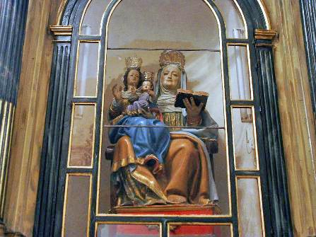 Santa Ana con la Virgen y el Señor. Es de las mejores Santos Joaquín y Ana Joaquín significa: "Dios dispondrá". Ana quiere decir: "la bienhechora". San Joaquín y Santa Ana tuvieron el honor de ser los padres de la Santísima Virgen María y los abuelitos de Nuestro Señor Jesucristo. Honor único en el mundo. Antiguas tradiciones dicen que su hija María se las concedió Dios después de que ellos oraron con mucha fe por años y años.