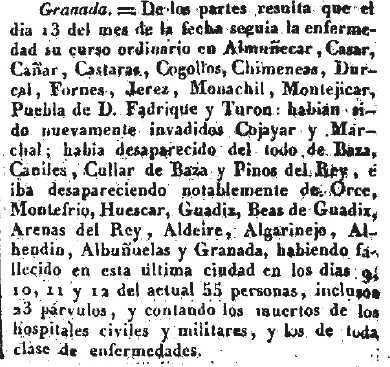 1834-8-21 R. Española. El cólera sigue en Dúrcal, Pinos del