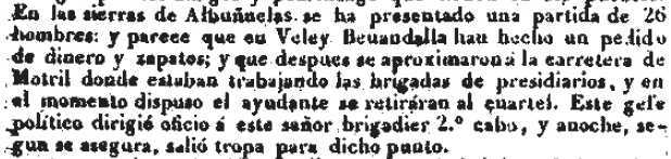 1841-5-8 E. Comercio. Partida de 26 bandoleros por Albuñuelas