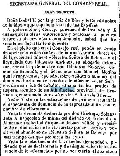 1851-4-29 España. Minas e cobalto en el Prado de Lopera de Albuñuelas