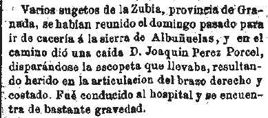 1865-4-15 Discusión. Se le dispara la escopeta en una cacería en la sierra de