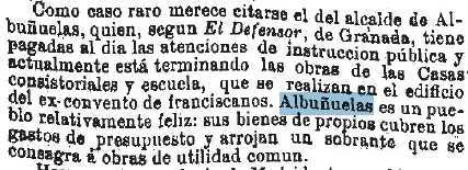 1881-8-16 Época. El alcalde de Albuñuelas preocupado por la educación de su