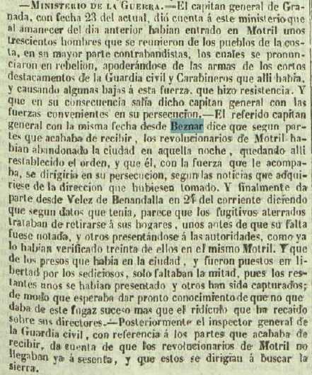 de Granada que se persigue a unos 300 revolucionarios levantados en Motril