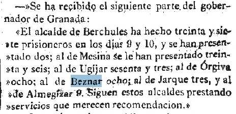 1849-3-31 Espańa. Se dejan refuerzos en Béznar ante posibles