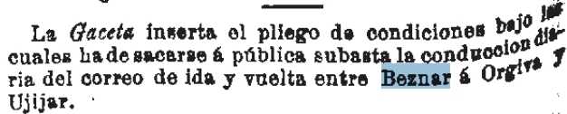 1869-6-6 Imparcial. Correo entre Béznar, Órgiva y Ugíjar