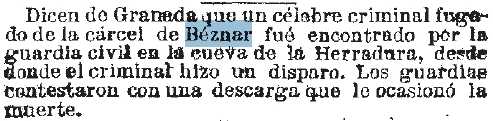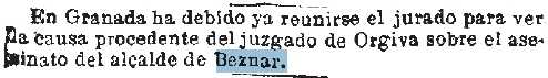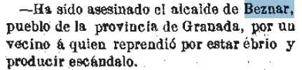 1873-1-4 Discusión. Asesinado el alcalde de Béznar por un