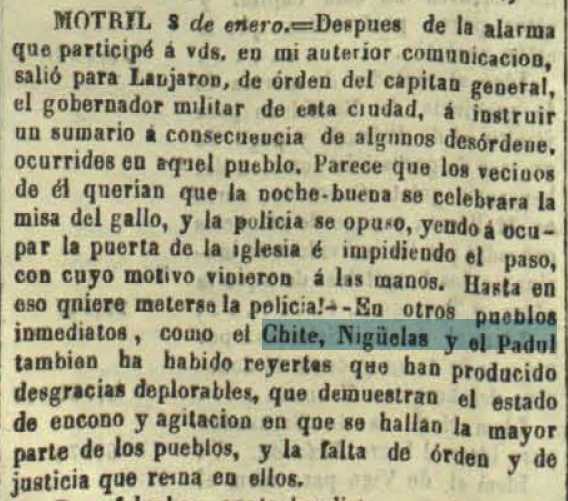1845-1-14 Espectador. desórdenes en Lanjarón, Chite, Nigüelas
