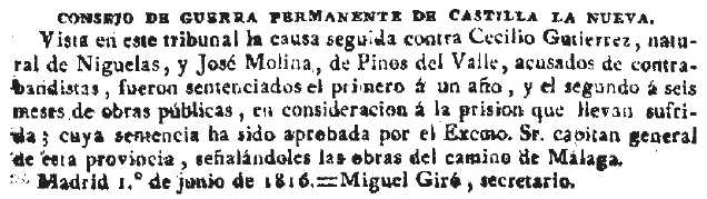 1816-6-2 D. Madrid. Sentenciados por contrabandistas un