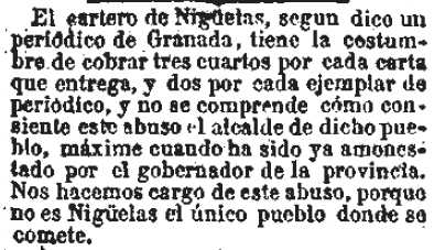 1864-7-13 Correspondencia. El cartero de Nigüelas cobra por