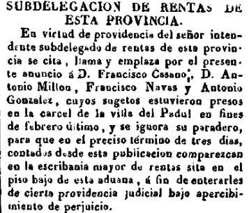 1837-4-27 D. Avisos. Presos de Padul