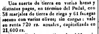1840-11-2 D. Avisos. Subasta de tierras en Padul