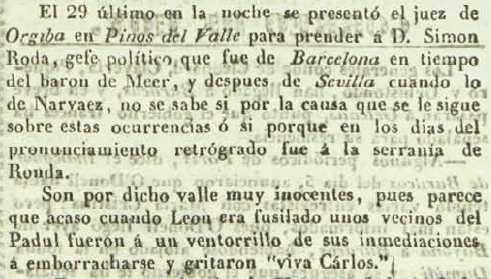 Valle. En Padul gritaron en un ventorrillo "Viva Carlos"