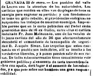 el carlista indultado Fr. Juan Maldonado. En este pueblo se insulta a los