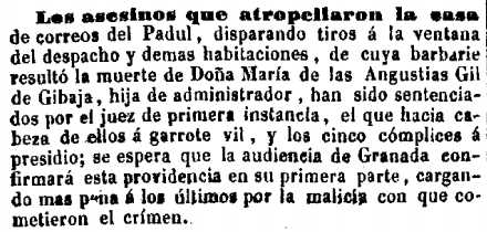 administrador de correos de Padul ha sido condenado a garrote vil y los cinco