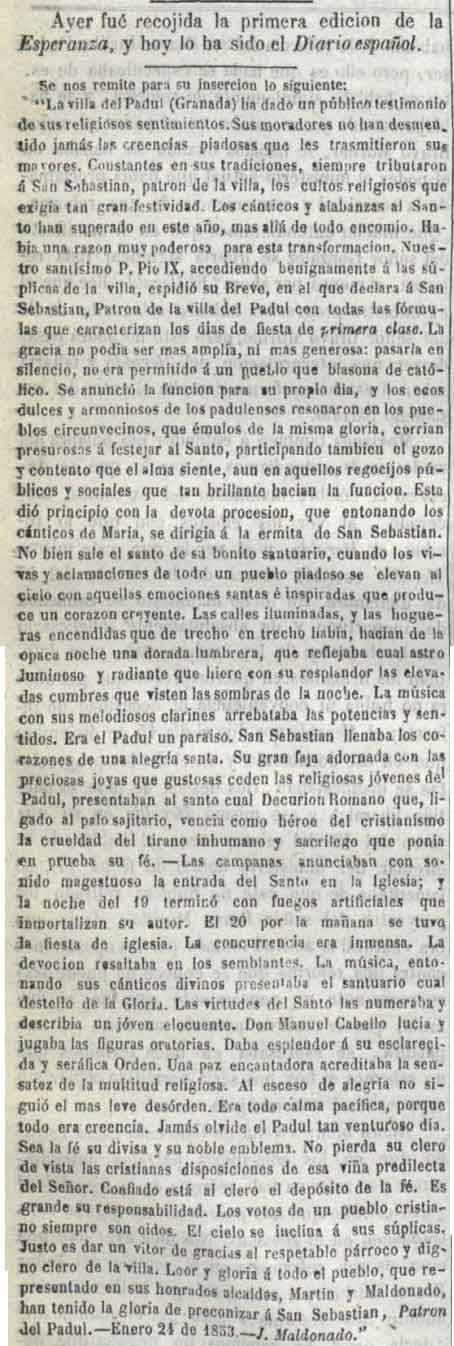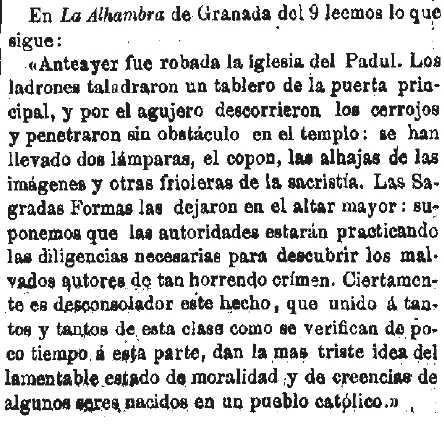 1859-1-11 Esperanza. Robo en la iglesia de Padul