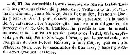 Isabel Luisa guardias civiles del puesto de Padul por salva a una mujer y sus