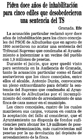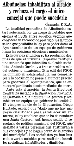 - 05/02/1992. El supremo inhabilita al ex alcalde de Albuñuelas