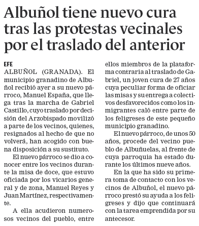 - 10/09/2007. El cura de Albuñuelas se pasa a Albuñol
