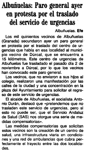 - 14/11/1991. Paro general en Albuñuelas en protesta por el traslado del