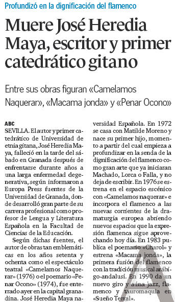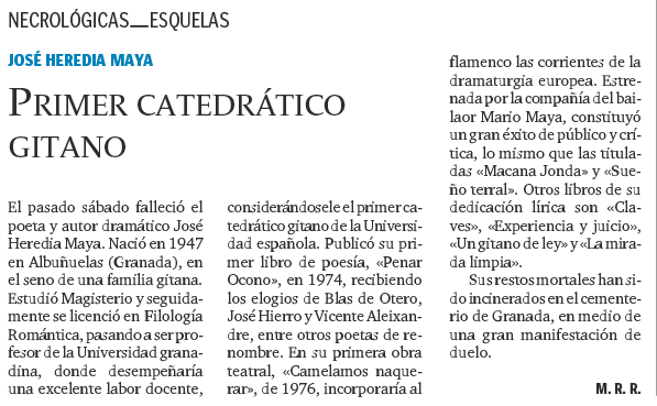 - 20/01/2010. José Heredia Maya. Primer catedrático gitano