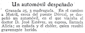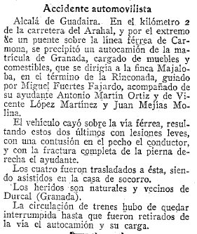 - 22/12/1931. Vecinos de Dúrcal tienen un accidente en Alcalá de Guadaira