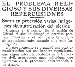 - 05/02/1933. Sacan sin permiso varias imágenes en procesión