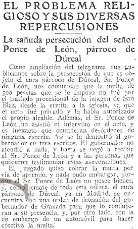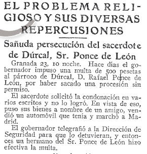 - 24/05/1933. Sañuda persecución del sacerdote de Dúrcal, Sr. Ponce de