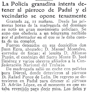 - 25/07/1933. La policía granadina intenta detener al párroco de Padul