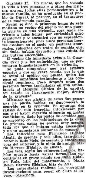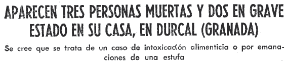 13/12/1969. Aparecen tres personas muertas y dos en grave estado en su casa