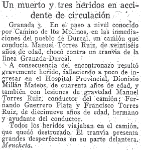 10/02/1961. El tranvía de Dúrcal arrolla a un hombre