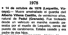 14/10/1978. Muere ametrallado por ETA el guardia civil Alberto Villena Castillo natural de Padul